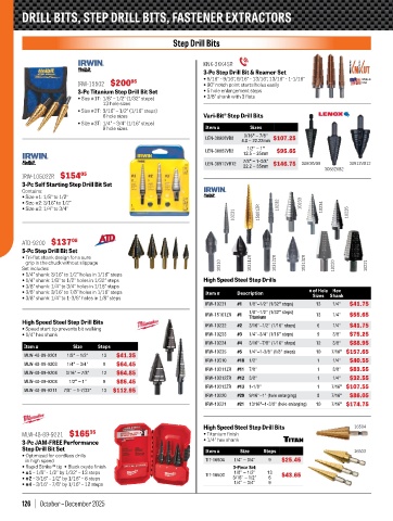 DRILL BITS, STEP DRILL BITS, FASTENER EXTRACTORS