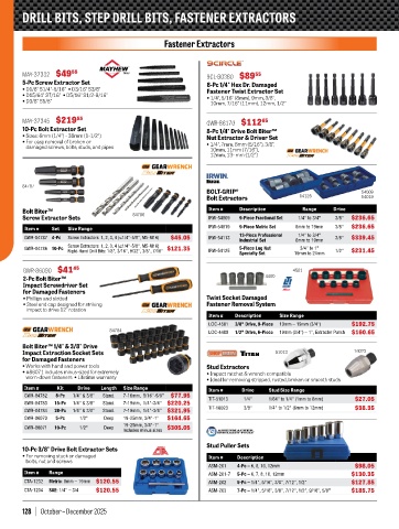 DRILL BITS, STEP DRILL BITS, FASTENER EXTRACTORS