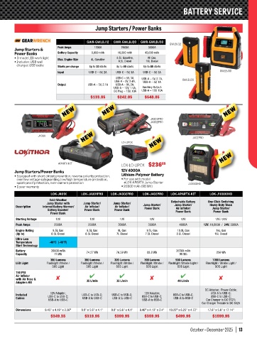 charger, USB cable Starts per charge Up to 20 starts Up to 40 starts Up to 85 starts