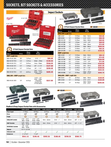 MLW-49-66-7015 1/2" 29-Piece 8mm – 36mm $318.35 GWR-84955N 1/2" 14-Piece 10mm – 27mm $156.05
