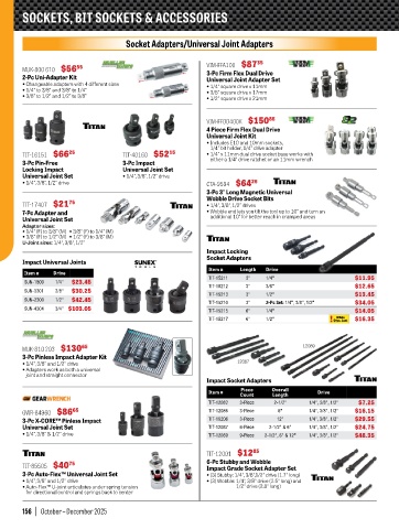 • 1/4", 3/8" & 1/2" drive TIT-12089 9-Piece 2-1/2", 6" & 12" 1/4", 3/8", 1/2" $48.35