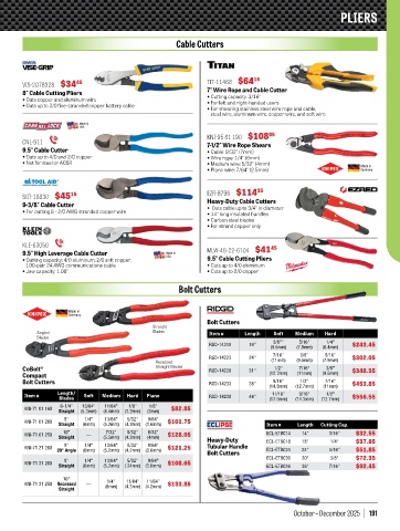 20° Angle (6mm) (5.2mm) (4.2mm) (3.6mm) Bolt Cutters ECL-ETBC24 24" 5/16"