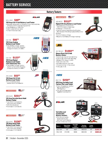 • 1 Year limited warranty • Tests all battery types including Flooded,
