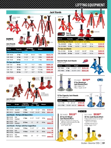Jack Stands  – Pin Type with Square Base                ESC-10459  $515 55        ESC-10456  $530 35