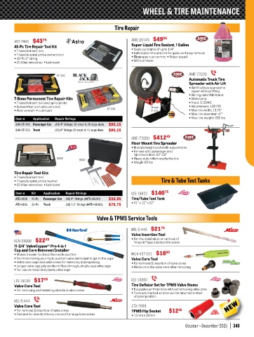 • T-handle spiral probe cement tool • Lubricates rims and tire for quick and easy removal