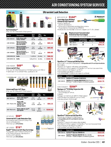 • For use in R-134a PAG systems, R-1234yf systems with PAG oil • (4) Universal oil cartridges (1 oz/ 30 ml)