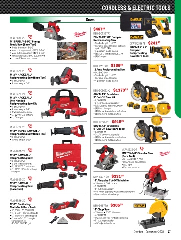 • Variable speed: 2,500-5,600 RPM • (1) Charger Saw (Bare Tool)