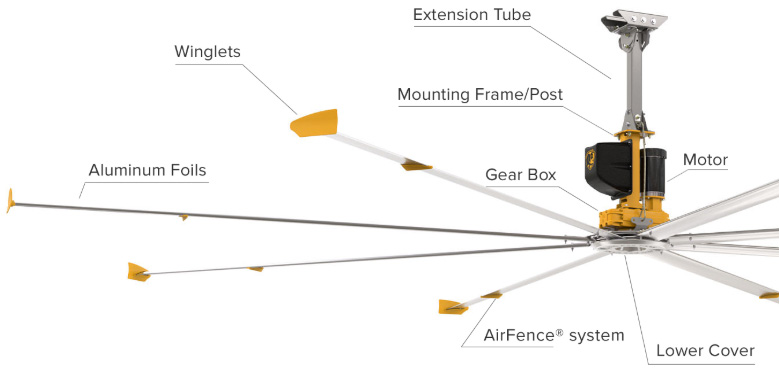 Overhead Big Ass Fans work with your HVAC to provide significant energy savings.